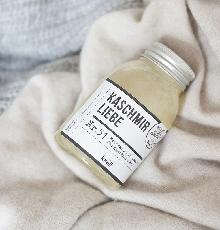 Wir arbeiten täglich mit Kaschmir und haben daher schon einiges gesehen und ausprobiert. Wenn Du Dir unsicher mit der richtigen Pflege Deiner Babydecke bist, dann empfehlen wir Dir das Waschmittelkonzentrat für Kaschmir & Wolle von kaell.