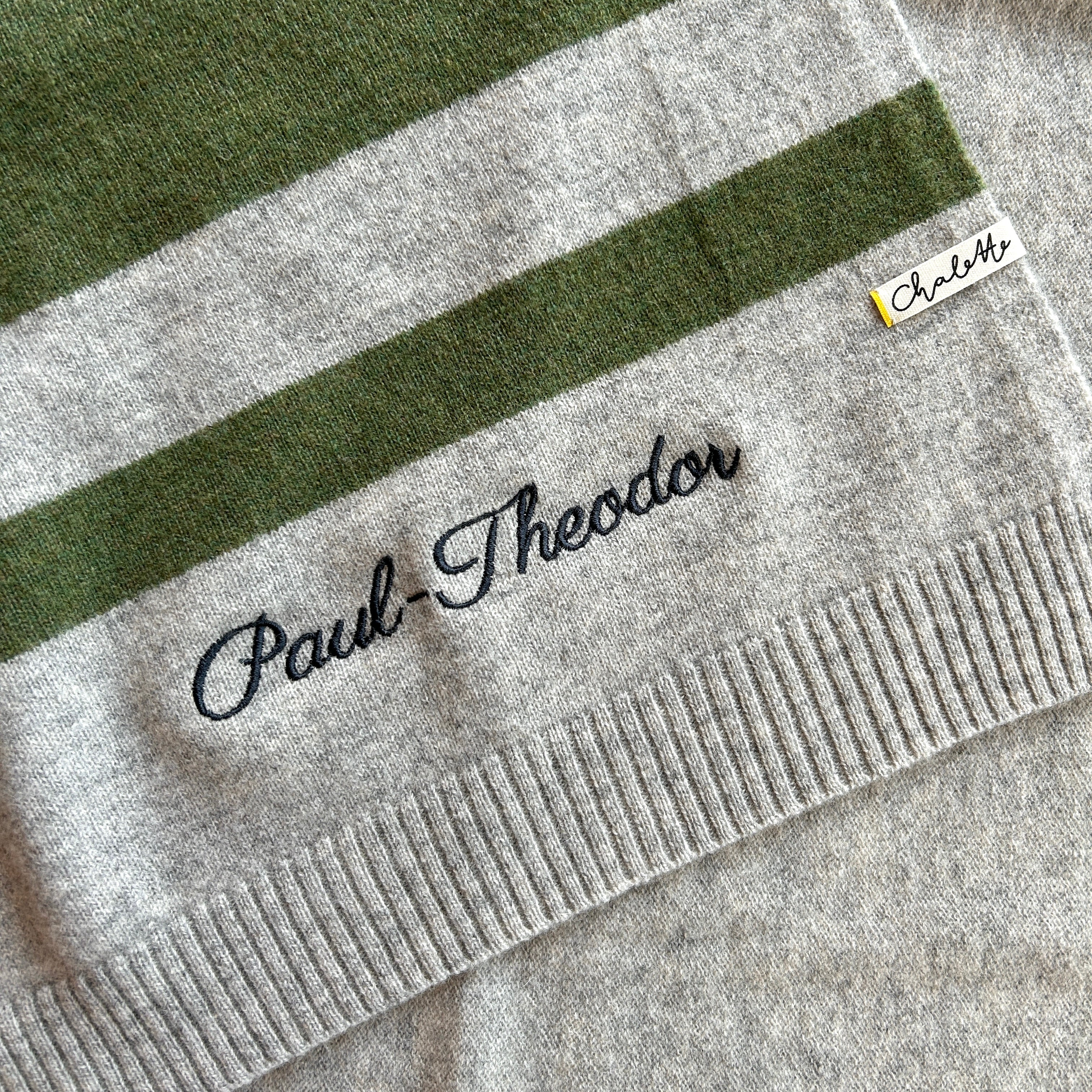 Mit dem Kauf einer unserer Decken hast Du auch die Möglichkeit unseren Stick-Service zu nutzen, um Deiner Decke eine ganz persönliche Note zu verleihen. Ob Name, Datum, Kosewort oder ein anderer Begriff – wir besticken Deine Decke genau nach Deinen Wünschen.