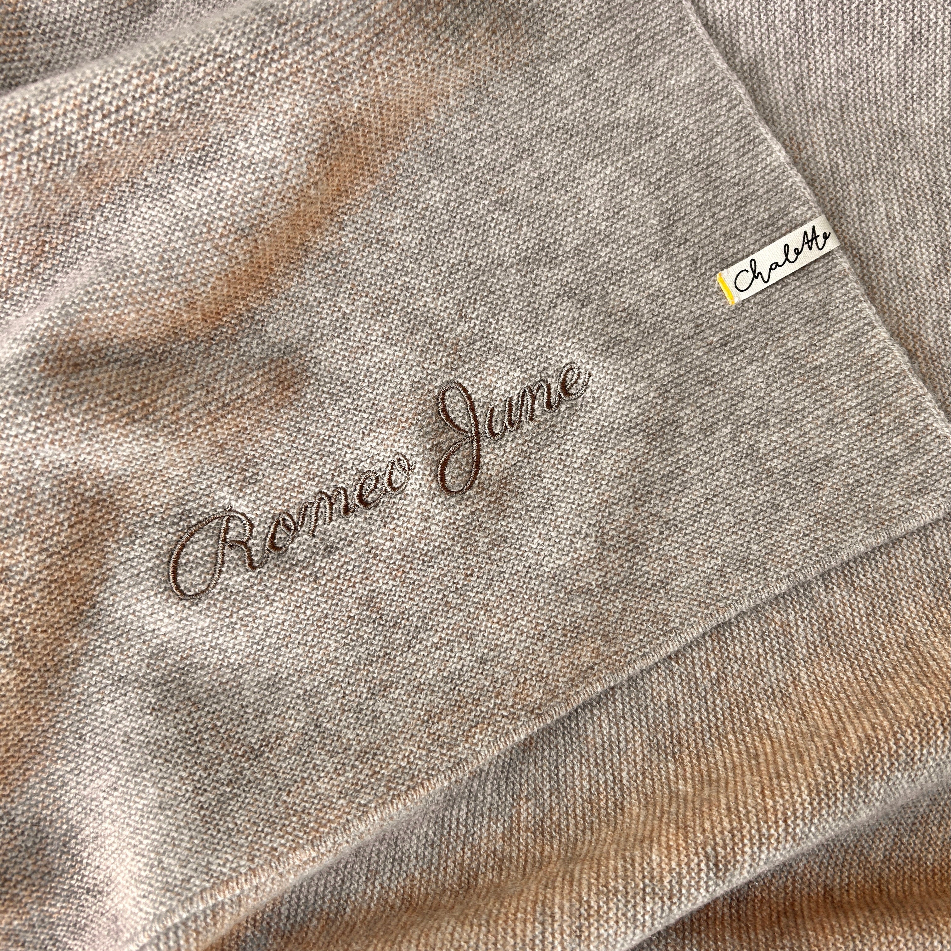 Mit dem Kauf einer unserer Decken hast Du auch die Möglichkeit unseren Stick-Service zu nutzen, um Deiner Decke eine ganz persönliche Note zu verleihen. Ob Name, Datum, Kosewort oder ein anderer Begriff – wir besticken Deine Decke genau nach Deinen Wünschen.